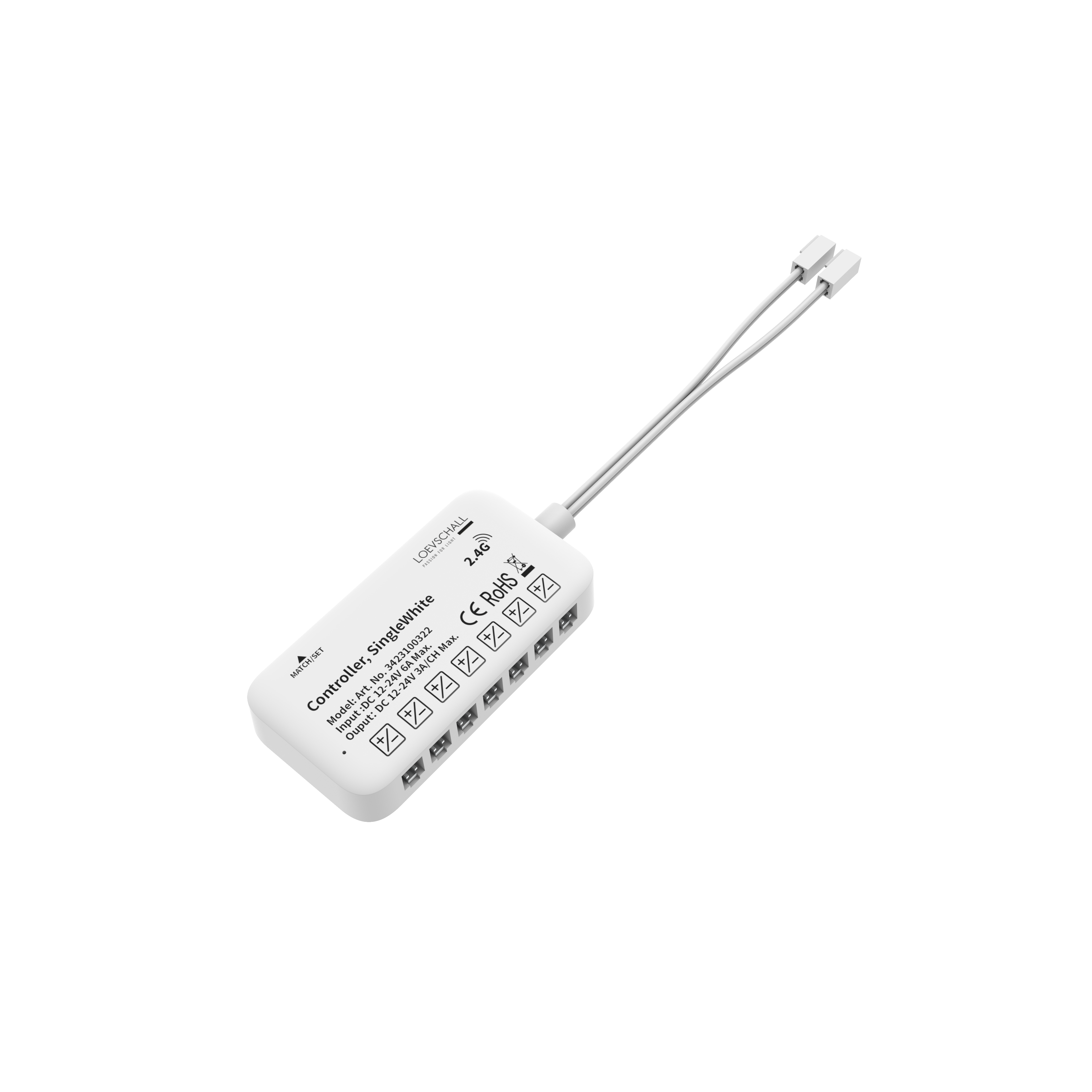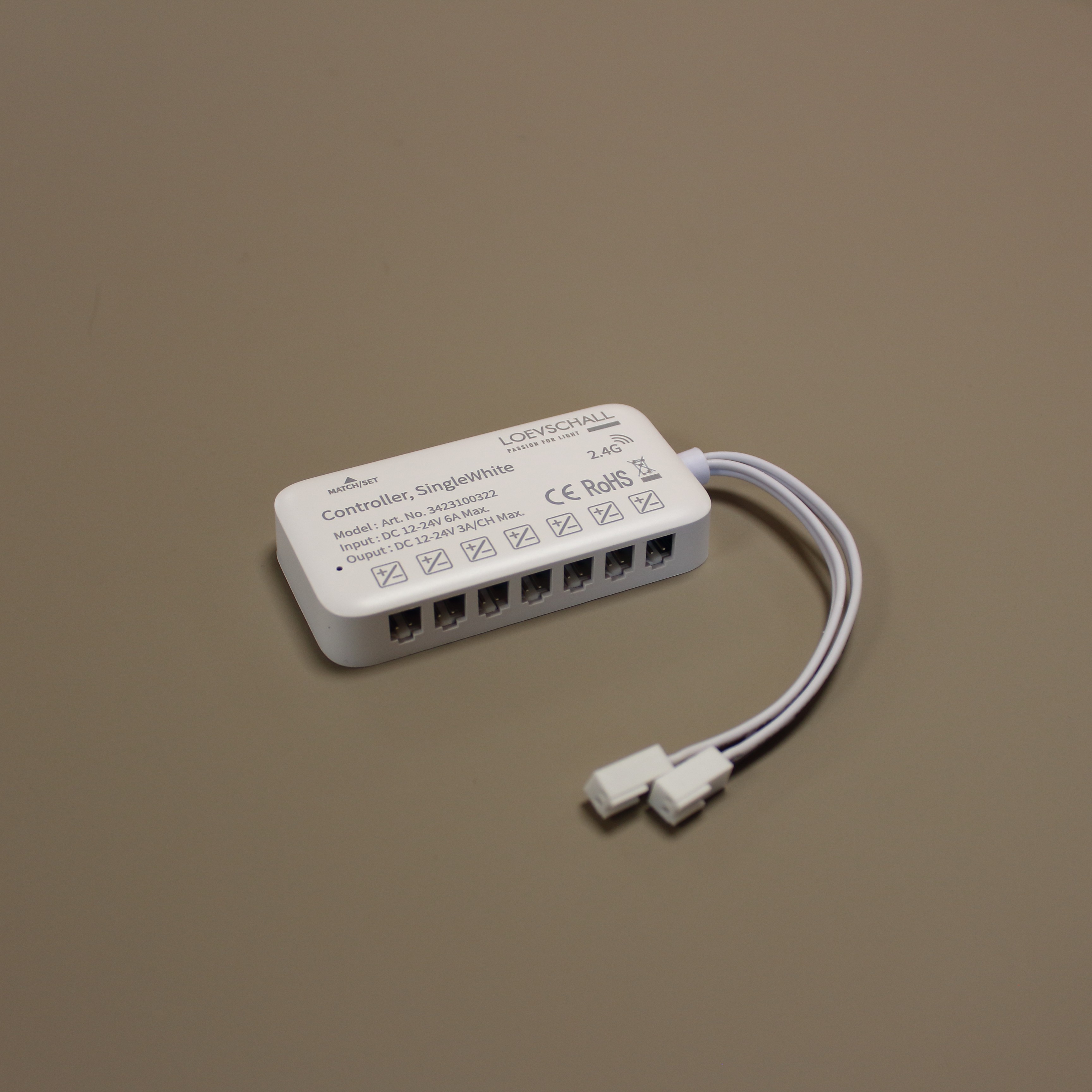 CUE controller SingleWhite er kompatibel med hele Loevschalls 12V-lyssortiment.