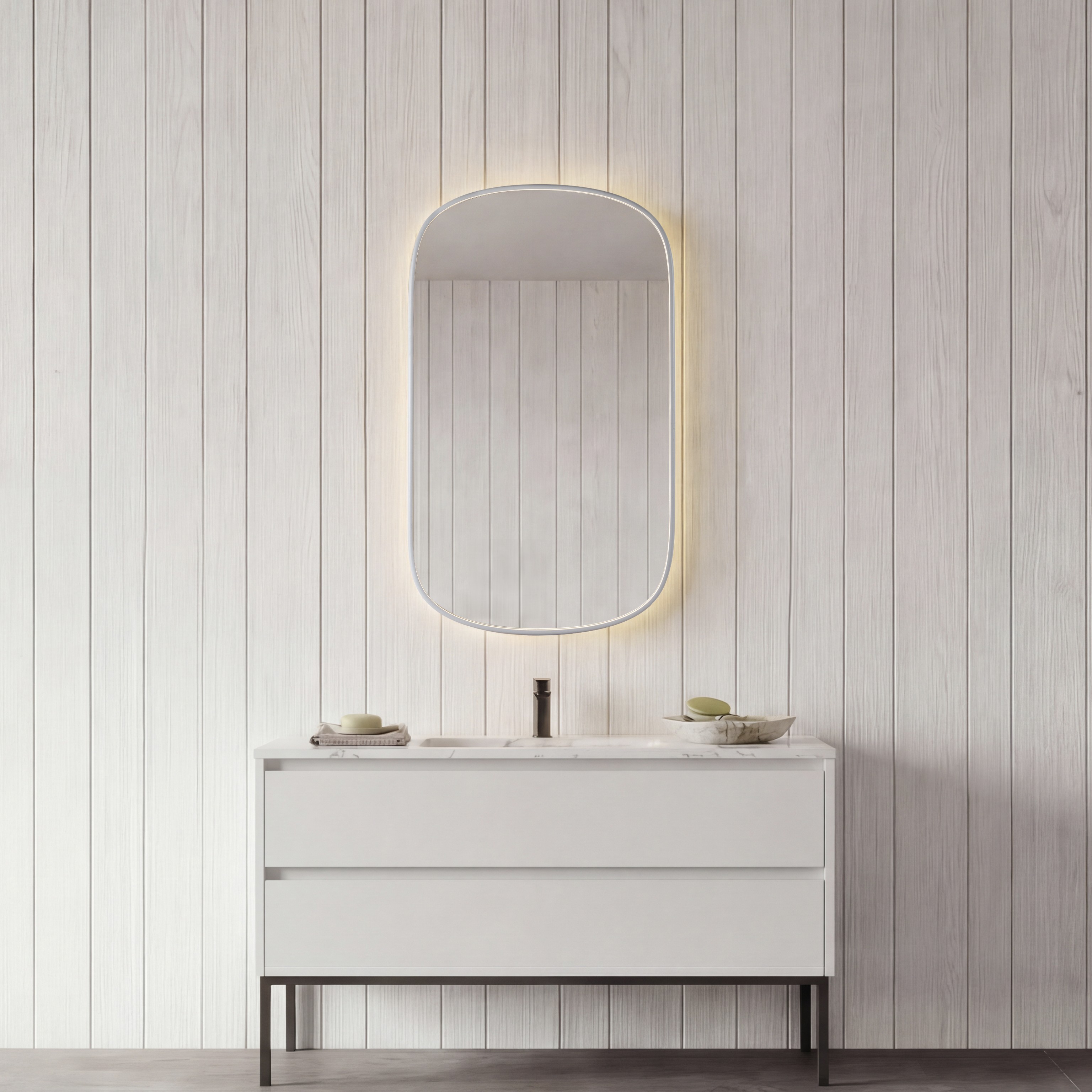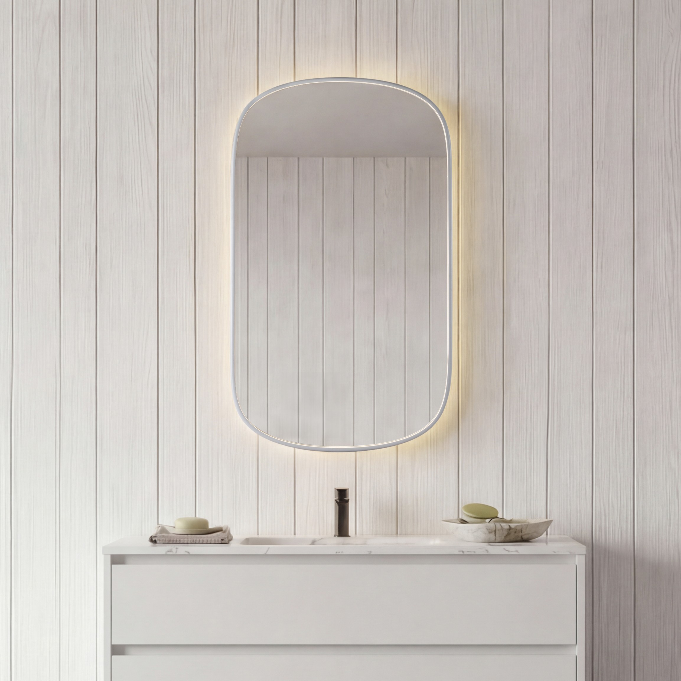 - Stemningsfuldt backlight til at skabe lys og hygge på badeværelset.